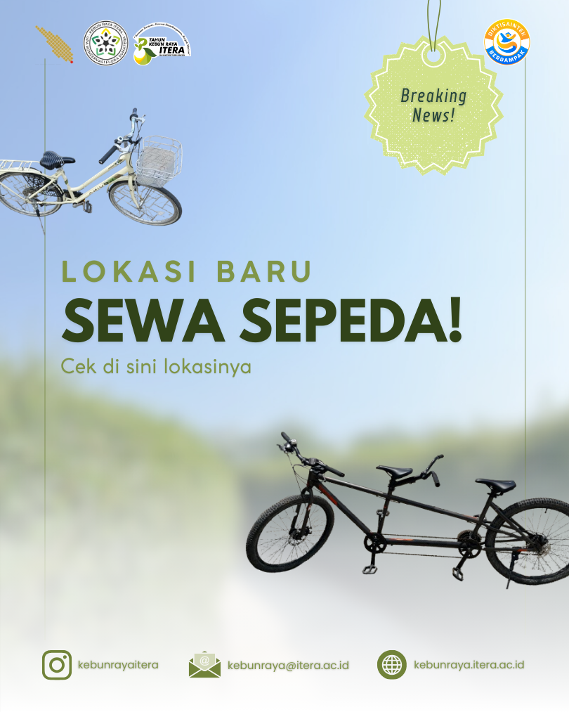 Dengan lokasi baru ini, semoga pengalaman bersepeda kalian di Kebun Raya Itera jadi lebih seru dan menyenangkan ya sobat kebun! Bisa banget kalau mau datang sendiri, bareng teman, pasangan, ataupun keluarga.